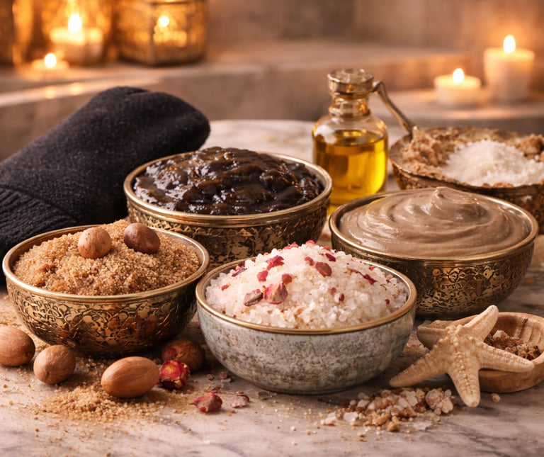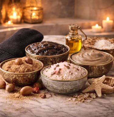 Offrez à votre peau un moment de douceur grâce à nos gommages aux textures et parfums inspirés des rituels du hammam.
